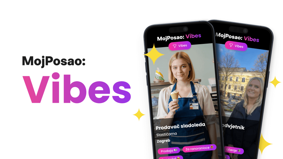 Tu dolazi MojPosao Vibes; platforma koja oglase za posao pretvara u kratke video formate prilagođene modernom načinu traženja posla. Video je brz, vizualan i odmah prenosi ono najvažnije: tko ste, što nudite i kakva je atmosfera u vašoj tvrtki.